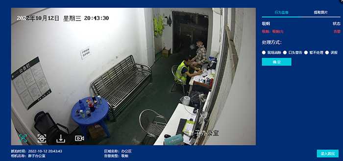 The edge computing box is an intelligent image analysis tool positioned in the factory (park), community, campus and other scenes. It can intelligently analyze the image data of the accessed ordinary cameras, portrait cameras and other equipment. In combination with the security housekeeper system, it can conduct personalized behavior early warning for personnel behavior, such as blacklist early warning, smoking early warning, helmet not wearing early warning, human body area intrusion early warning, vehicle parking early warning, Electric vehicle warning, etc.